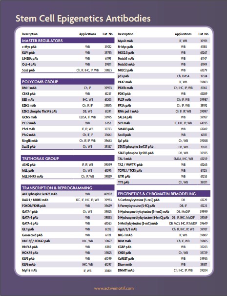 Active motif干細(xì)胞表觀遺傳學(xué)指導(dǎo)